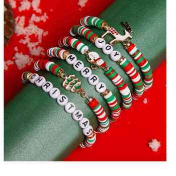 6 Pack Christmas Bracelets Includes 6 Festive-style Bracelets in Holiday Colors