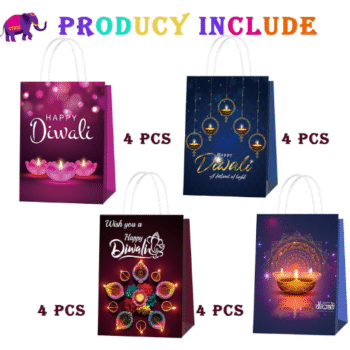 Diwali Gift Bags 16 Pack Paper Bags With Happy Diwali| Perfect for Return Gifts