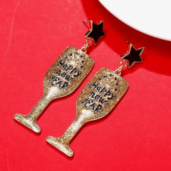 Champagne Bottle & Glitter Wine Glass Drop Earrings Perfect for New Year’s