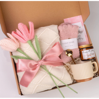 Crochet Flowers Bouquet, Handmade Rose Tulip Knitted Flowers, Artificial Flower Arrangement for Mother’s Day, Valentine’s Day, Birthday, Anniversary, Wedding, Home Decor, Gifts for Mom, Friends, Lovers, Pink